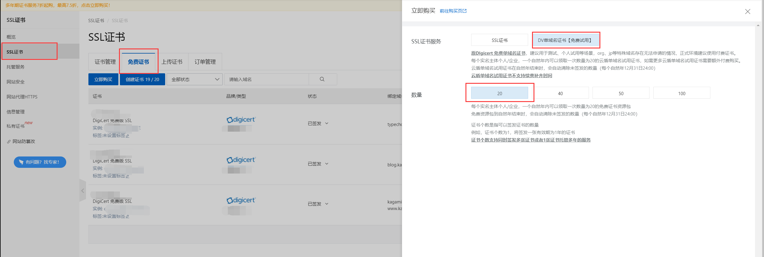 因为我的服务器和旧域名都是在阿里云的,所以这里只举例阿里云的SSL流程