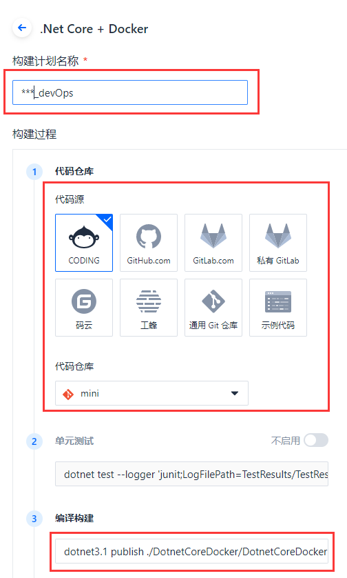 编译基本跟我们自己在本地编译一样,只是因为coding构造环境命令问题,我这边需要换dotnet3.1