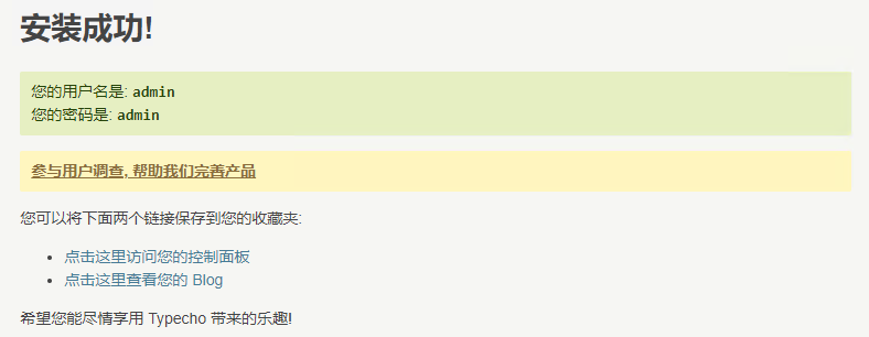 至此,我们的Typecho就已经安装完毕了.