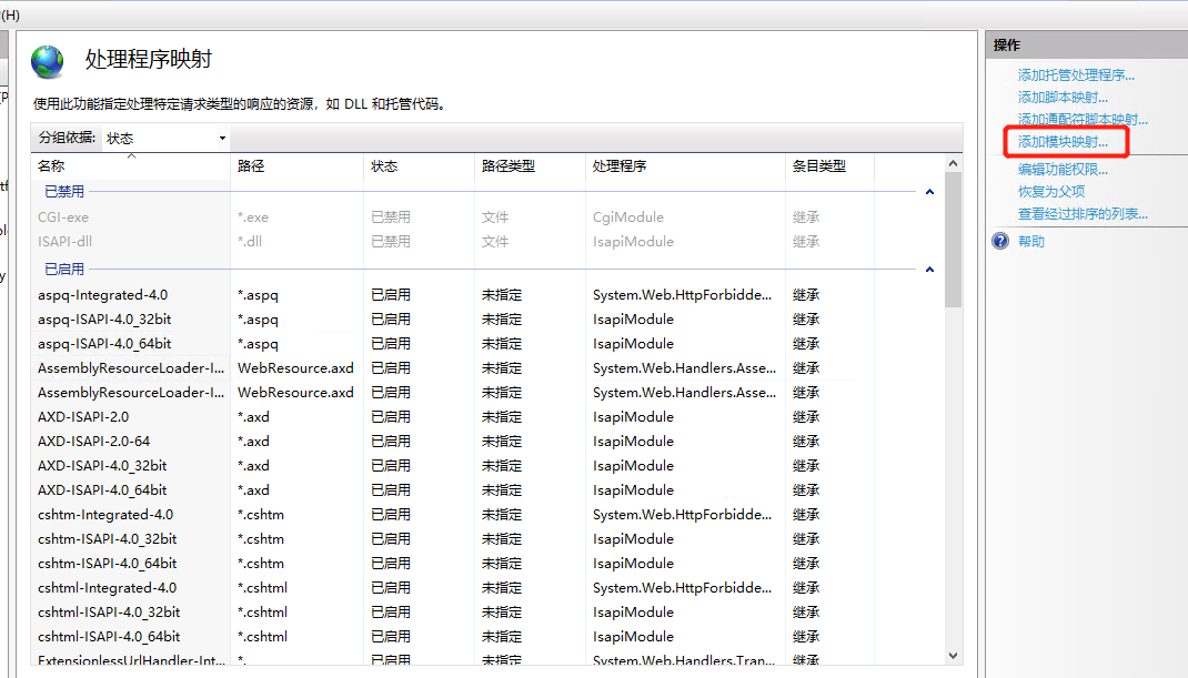 接来下为IIS添加映射,模块我们选择FastCgiModule,执行文件就选择PHP目录下的php-cgi.exe